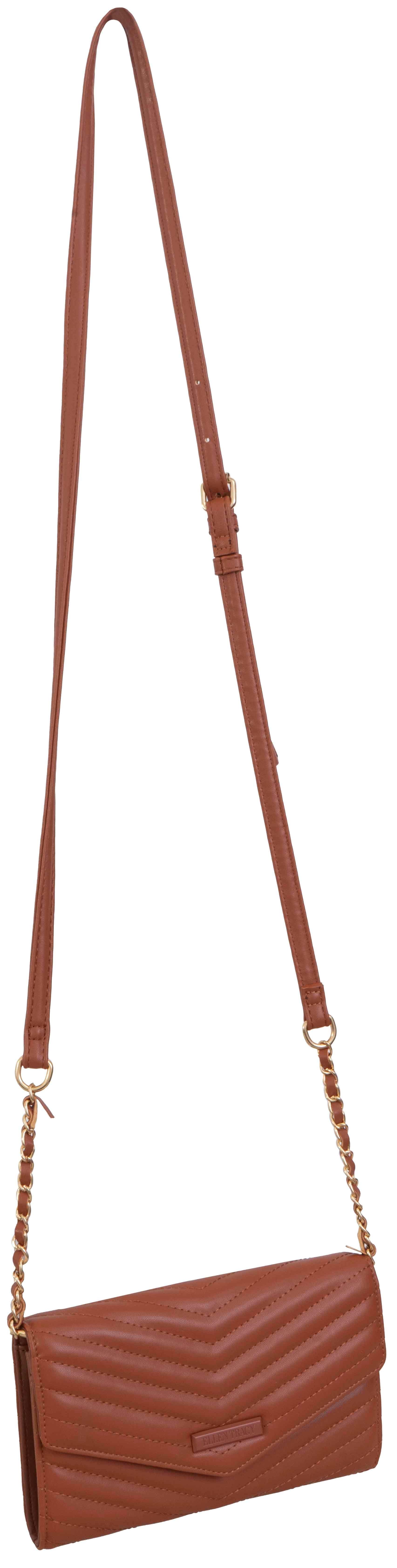 Elevate your evening ensemble with the Ellen Tracy Smooth Chevron Quilted Phone Case & Wallet on Chain Crossbody. This versatile accessory seamlessly combines style and functionality, making it the perfect choice for a sophisticated night out.