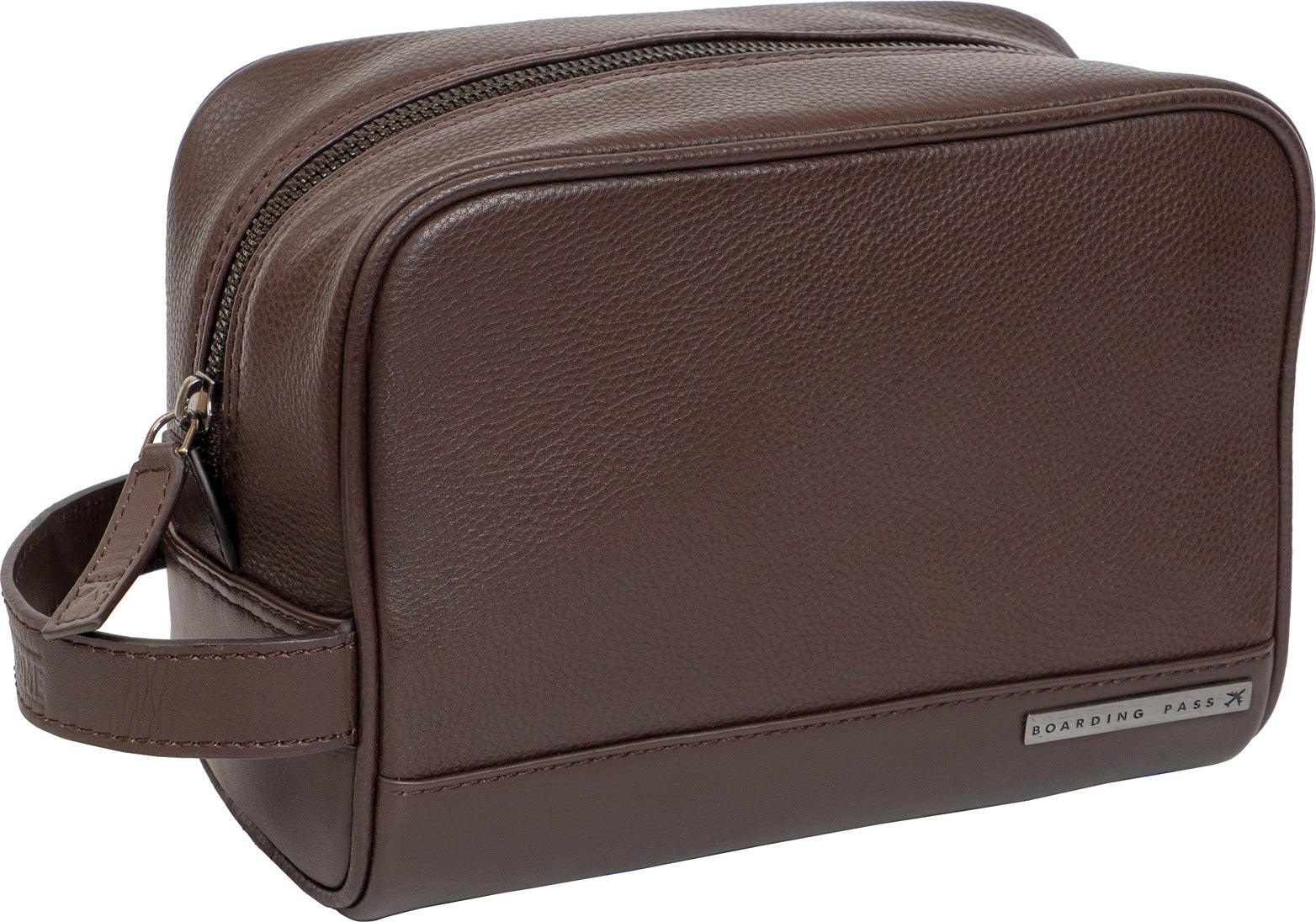 Hey Handsome Pebble Grain Genuine Leather Dopp Kit - Chocolate