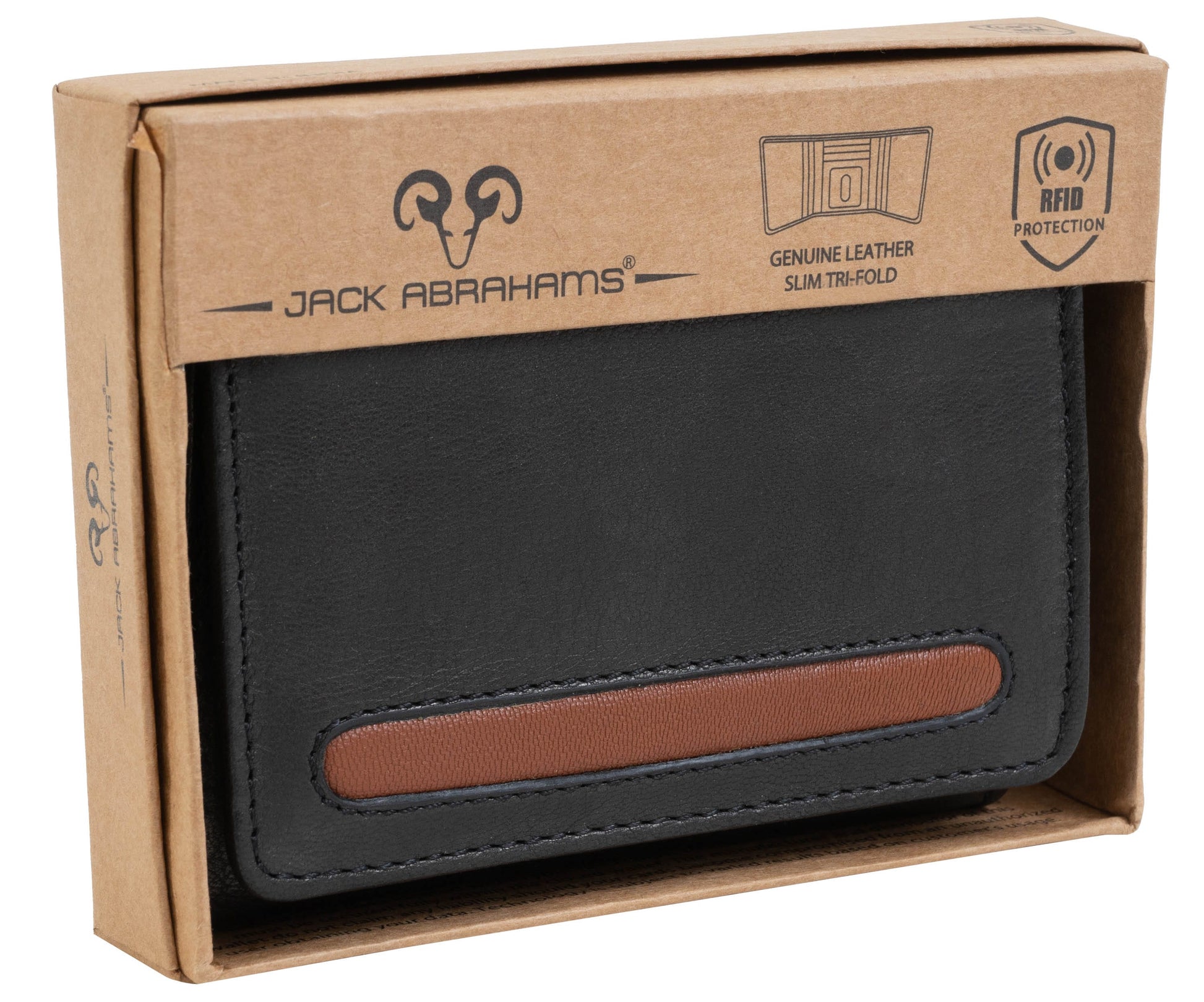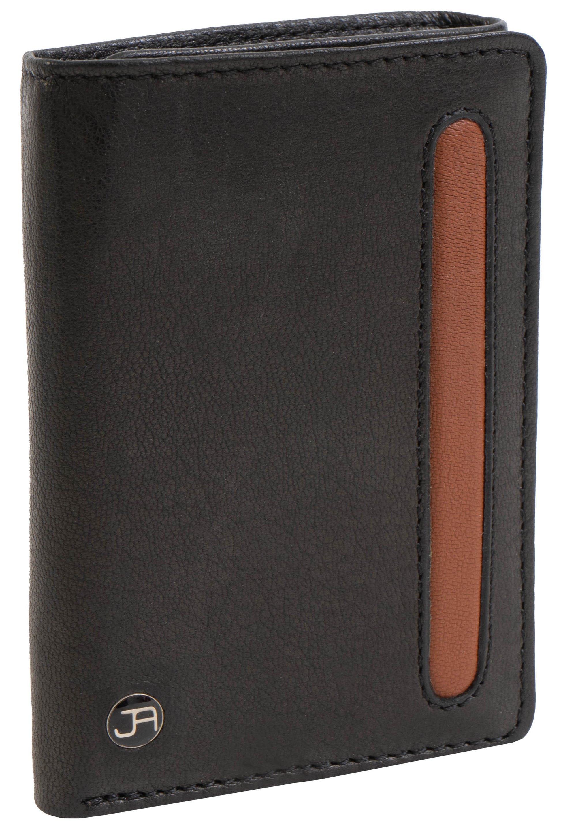 Jack Abrahams Goat Nappa Leather Tri-Fold Wallet Black/Cognac