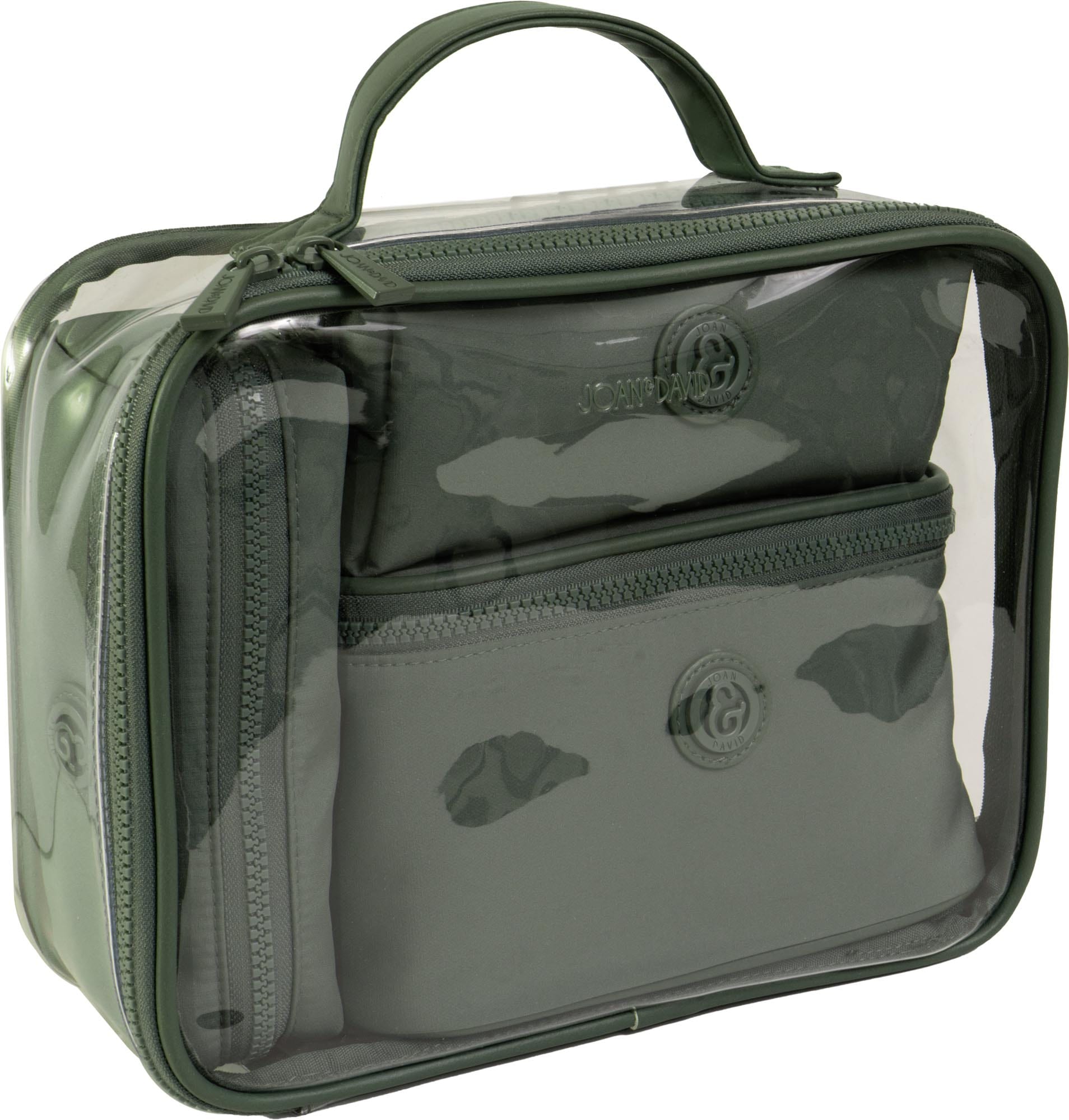 Organize your travel essentials in style with the Joan & David Tonal Sport Nylon 4-Piece Clear Cosmetic Bag Set, our best-selling travel toiletry set. Crafted from durable and sleek tonal sport nylon, this set is perfect for beauty and grooming needs. It includes four versatile pieces with clear panels for easy visibility and two TSA-approved reusable travel bottles, making it an ideal gift for frequent travelers or beauty enthusiasts.
