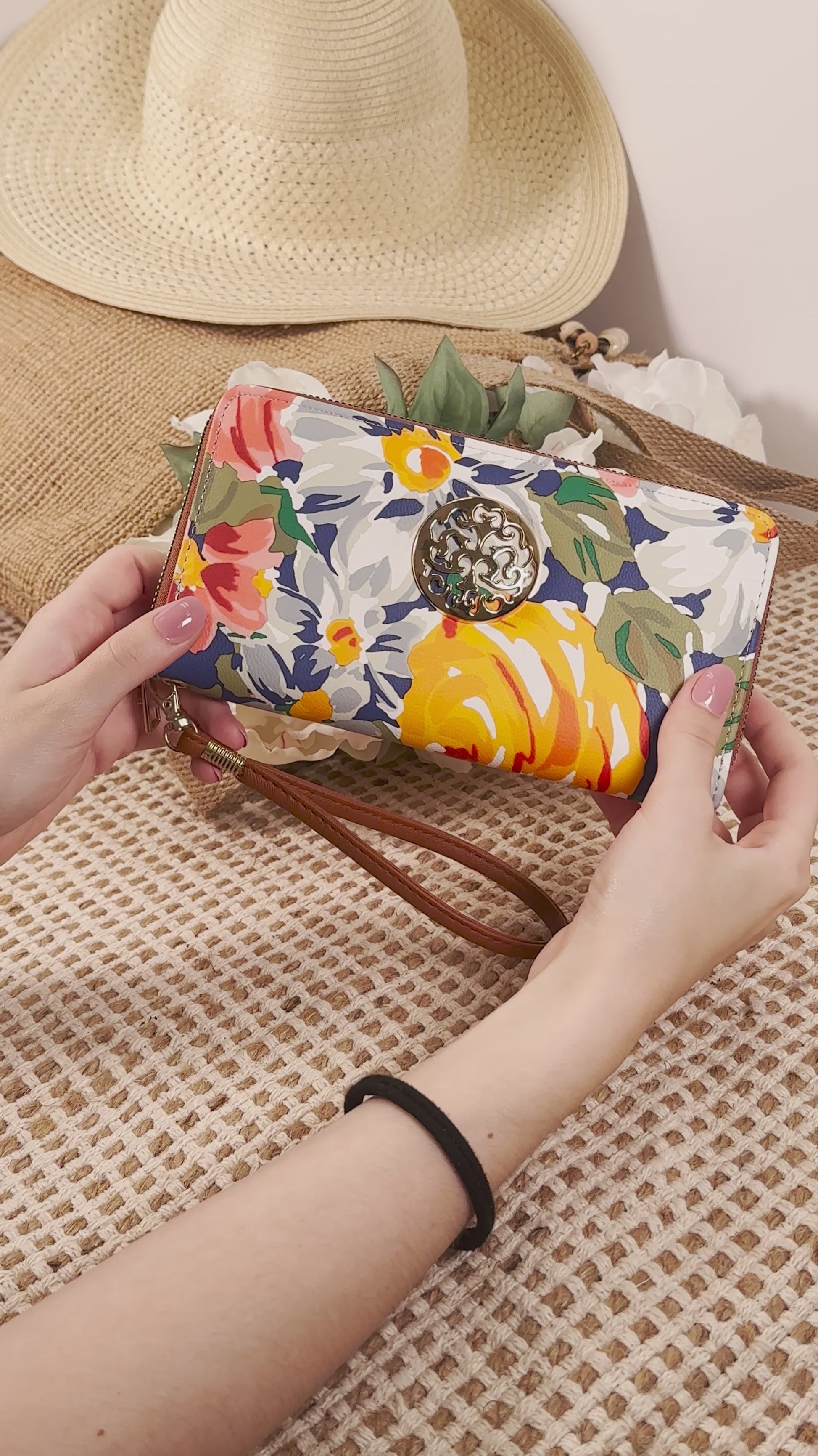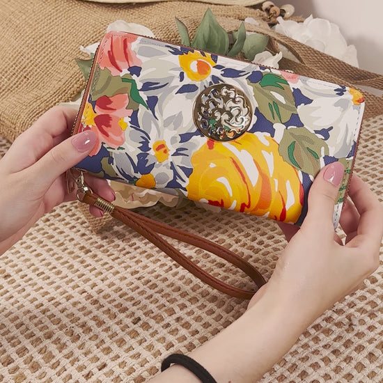 Rebecca & Rifka Floral Print Medallion Zip Wristlet Wallet